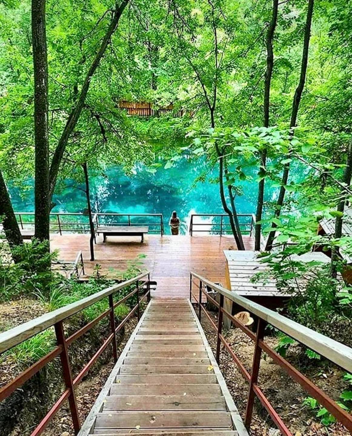 • Водопад большого озера, откуда голубая вода стекает в реку Казанка